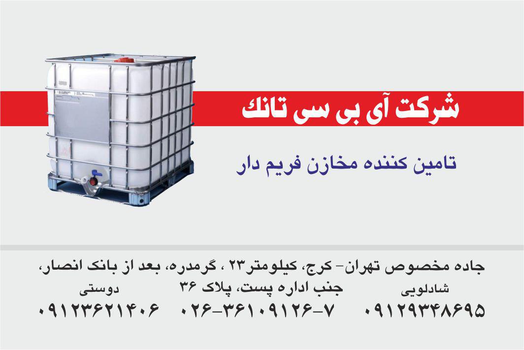 مخزنهزارلیتریفریمدارIbcتانک مخزنی است در ابعاد طول۱۲۰ ارتفاع۱۲۰ عرض۱۰۰سانتیمتر کهدرکانتینر20 فود۲۰عدد در کانتینر40فود۴۰عدد گنجایشدارد.